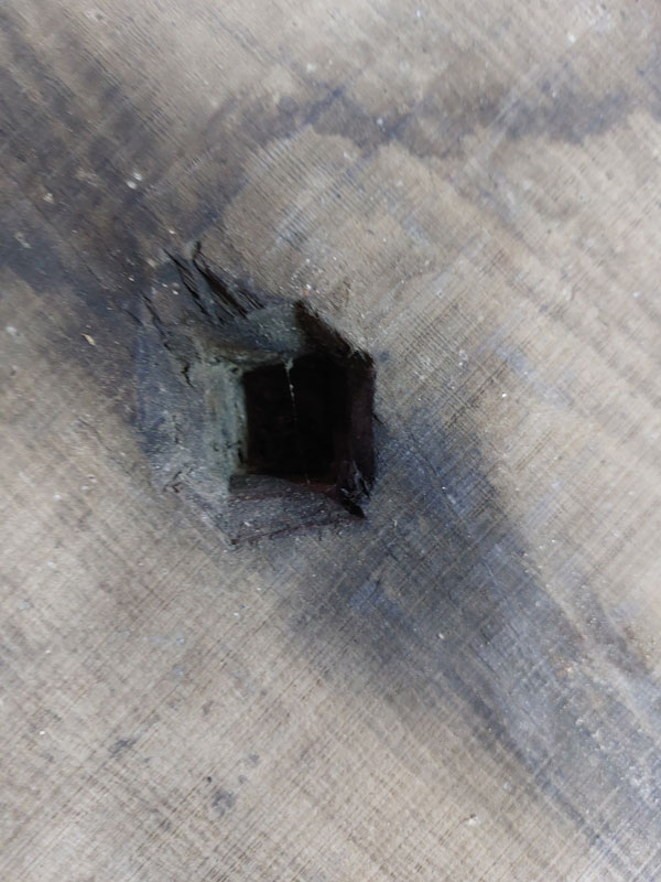Na rampla de formigón vai ancorada sobre rastrel de castaño e construídos mediante o mesmo sistema de ingletes.
